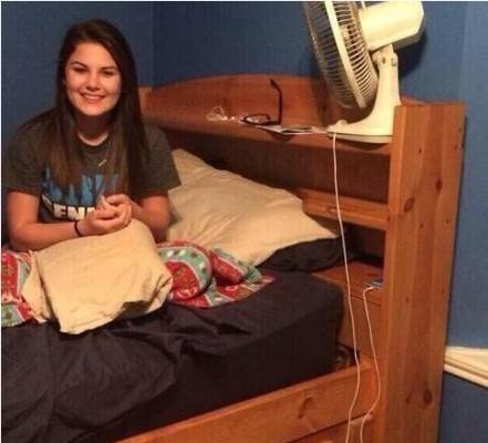 We'll help you by showing you the full picture of the girl on her bed. Check everything from her pillows to her fan, maybe even the wall? Just keep checking every corner of the image until you see something out of place…
