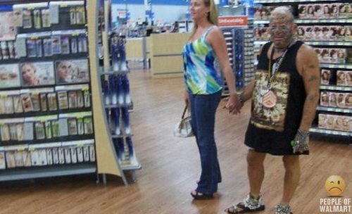 Even people with excessive facial tattoos find love, that's not so extraordinary. What is rather extraordinary is that this woman chose this specific man to be the object of her affections. And you know, he seems like a great guy. He's accompanied his woman to the hair dye aisle and seems pretty patient, even with the attention he's getting. These kids are going to make it; we just know it.